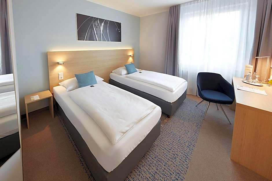 Business Twin Room is 172 square feet and includes a king-size bed 150-183 width plus desk and hairdryer.